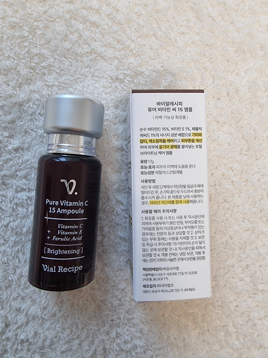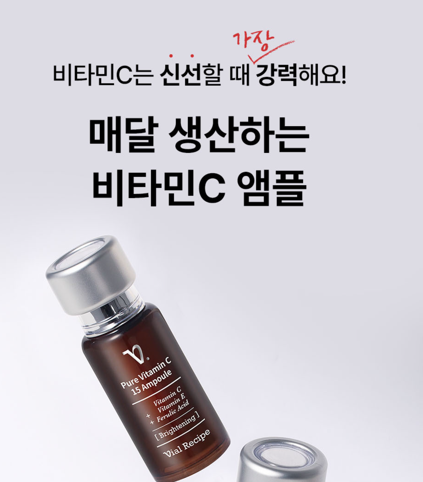 풀네임은 바이알레시피 순수 비타민C E 페룰릭 미백 항산화 기미앰플 입니다.