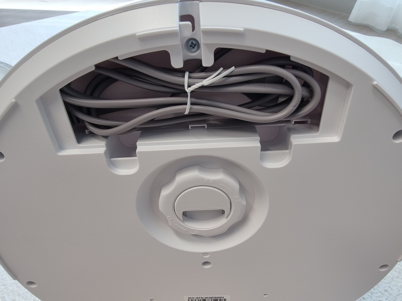 코드선이 안보인다 싶었더니 선풍기 아래 이렇게 깔끔하게 숨어 있었네요. 선을 빼는 곳으로 잘 빼줍니다. 선풍기 보관시에 에 깔끔하게 보관할 수 있을 것 같습니다.