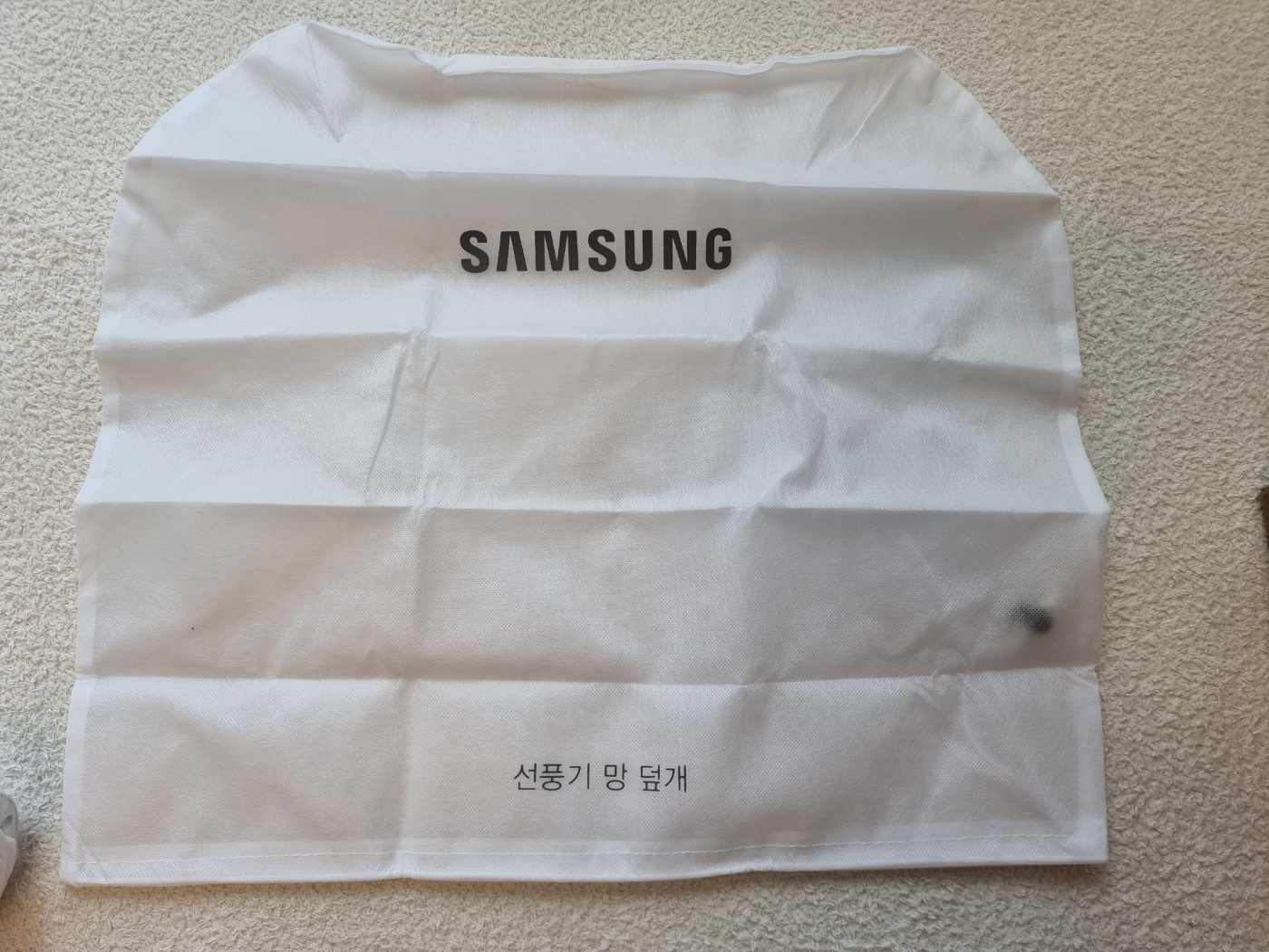 덮개를 펼치면 선풍기 팬 부분을 덮을 수 있는 선풍기 망 덮개가 이렇게 되어 있습니다.
