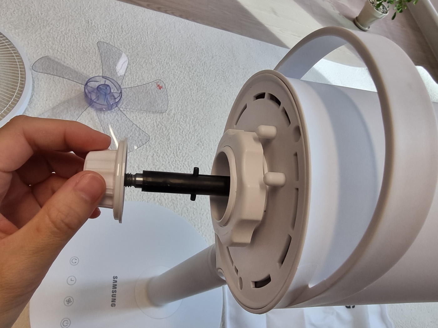 드디어 완성 했습니다. 완전 싸구려 플라스틱 같지 않아서 좋습니다. ㅠㅠ 가볍다고 홍보하는 제품들 중에 너무 소재가 가볍고 싸구려 느낌이라 잘 따져 보셔야 합니다. 삼성 선풍기 제품은 적당한 무게와 깔끔한 마감이 돋보이네요. 색깔도 전혀 촌스럽지 않은 흰색이였어요.